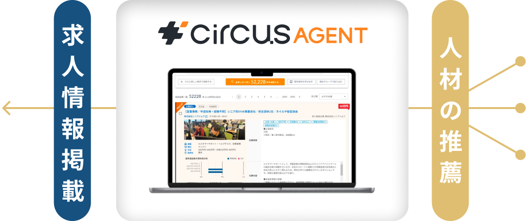 応募数不足や推薦の質、採用工数のお悩みなどをcircusAGENTで解決。