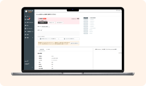 エージェントとの連絡はすべて媒体上のチャットで完結し、支払いや請求もcircusが一元管理し、エージェント採用の工数を最小化します。
