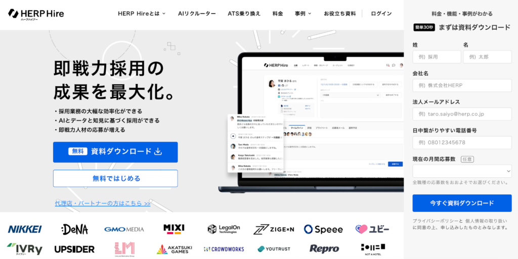 人事だけでなく、現場社員と協力しながら採用したい企業には、HERP Hire(ハープハイアー)がおすすめです。