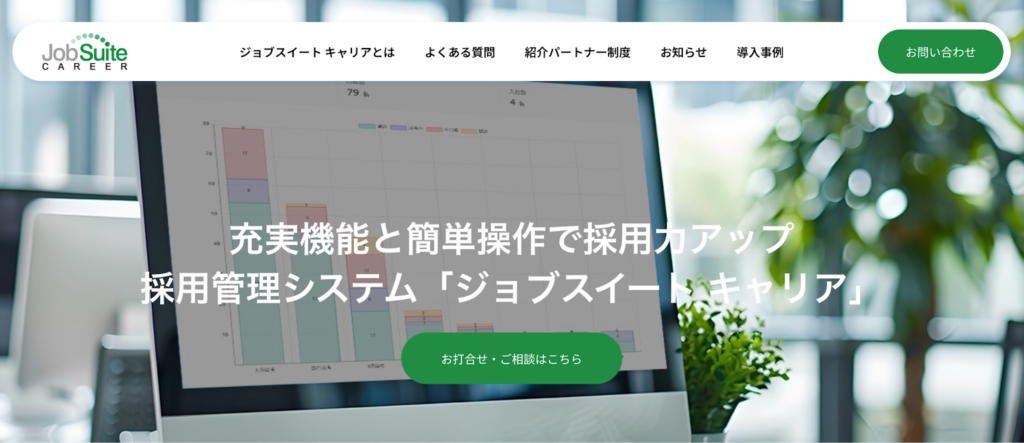 「JobSuite CAREER(ジョブスイートキャリア)」は、中途採用に特化して20年以上の実績を持つ、信頼性の高い採用管理システムです。その魅力は、使いやすさと拡張性のバランスにあります。シンプルで分かりやすいUIを備えつつ、採用人数の増加や採用手法の変更に応じて、必要な機能を後から追加・調整できます。
