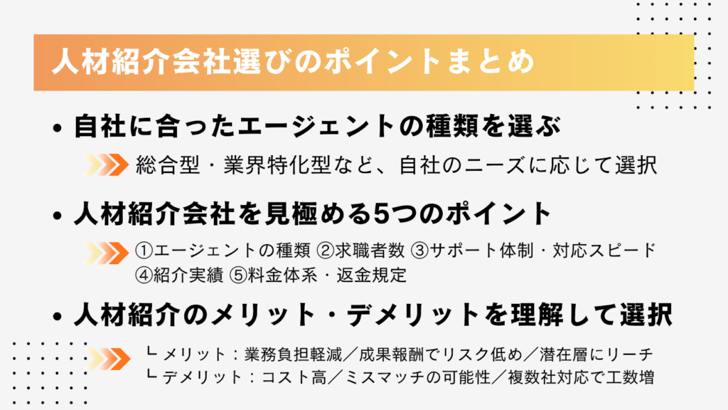 - 人材紹介会社を選ぶ際のポイント