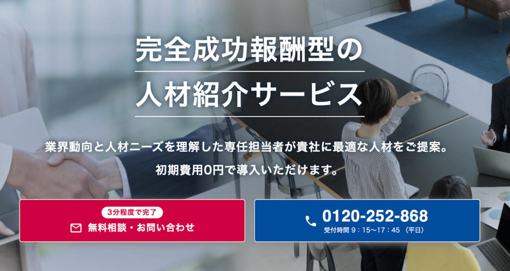 採用エージェントの多くは完全成果報酬型を採用しており、初期費用や掲載料などの固定費がかかりません。求人を出したり、何人紹介を受けたりしても費用はかからず、実際に候補者が入社した時点で初めて報酬が発生します。