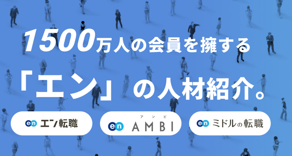 エン・エージェントは、「エン転職」「ミドルの転職」「AMBI」など多くの転職サービスを展開するエン株式会社が運営している人材紹介サービスです。
