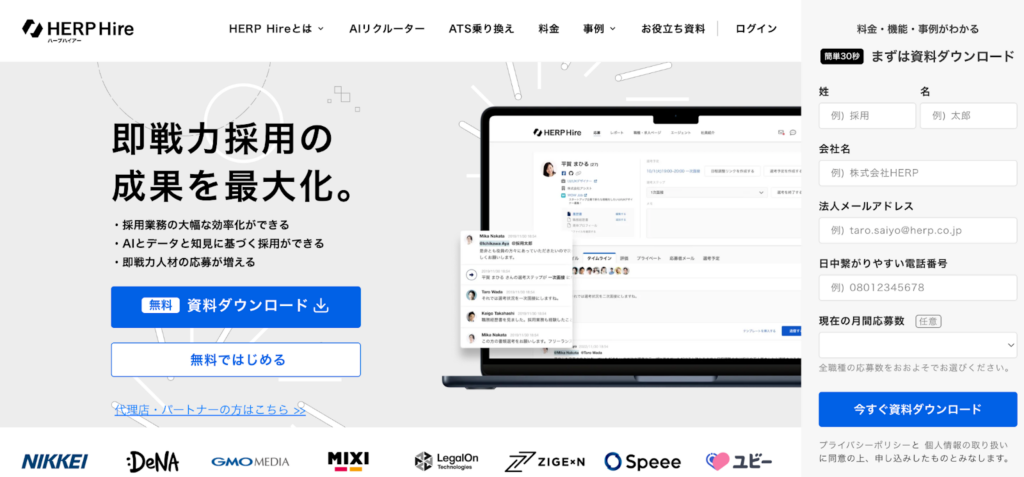 HERP Hireは、現場社員を巻き込んだ「スクラム採用」を推進したい企業におすすめできる採用管理システムです。
