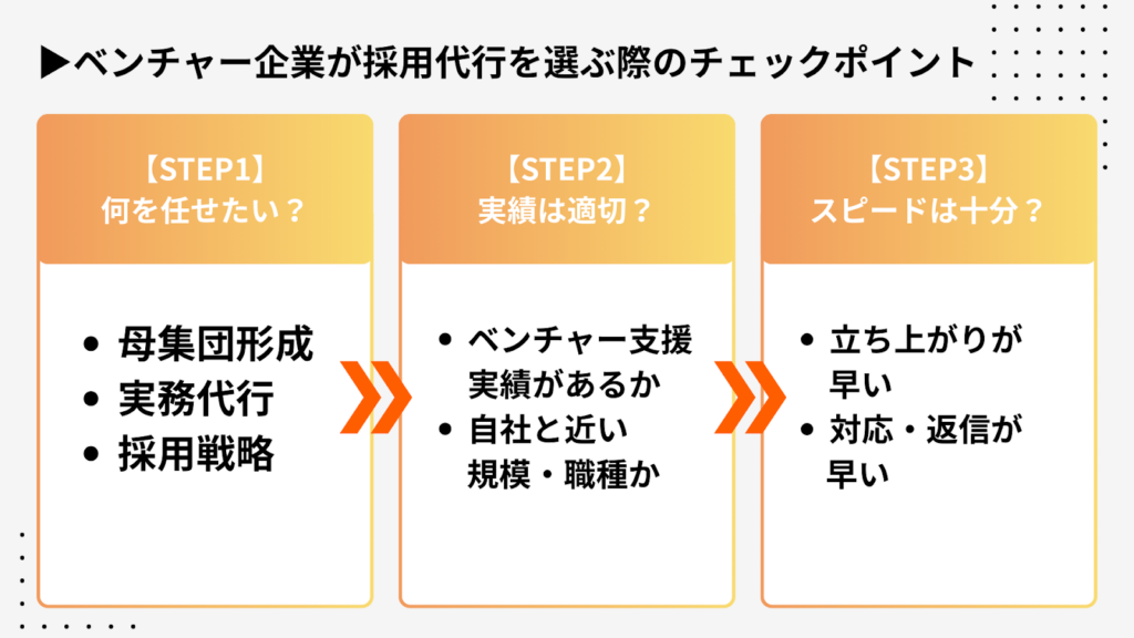 • ベンチャー企業が採用代行を選ぶ際のチェックポイント
