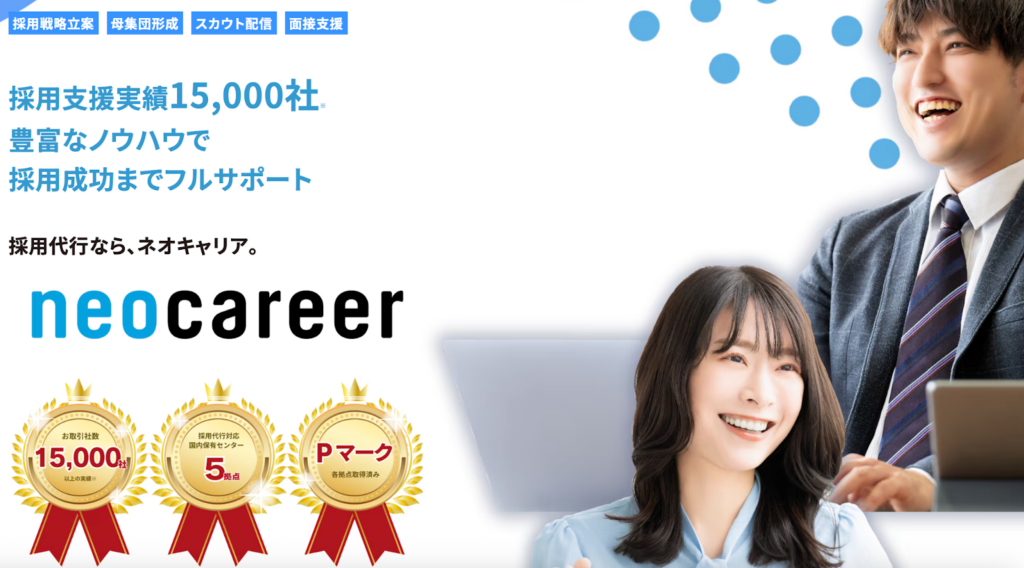 株式会社ネオキャリアは、年間1万5,000社以上を支援する大手の採用代行会社です。
